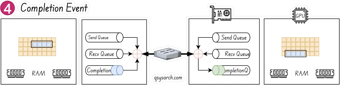 - QP: Queue Pair (QP) = Send Queue + Receive Queue.