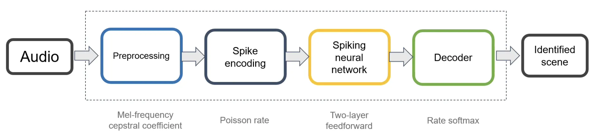 Innatera’s Thinking in Pulses blog provides a good overview of how this would be implemented in hardware. Encode the “heys” into binary values, get them through a NN, and extract the features. So far, nothing special; this is a standard NN process.