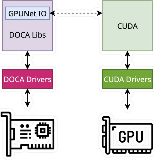 In the above diagram in the GPUNetIO documentation, the “CUDA” box is a bit confusing. I assume it is a kernel running on the GPU, but let’s check what the documentation says: